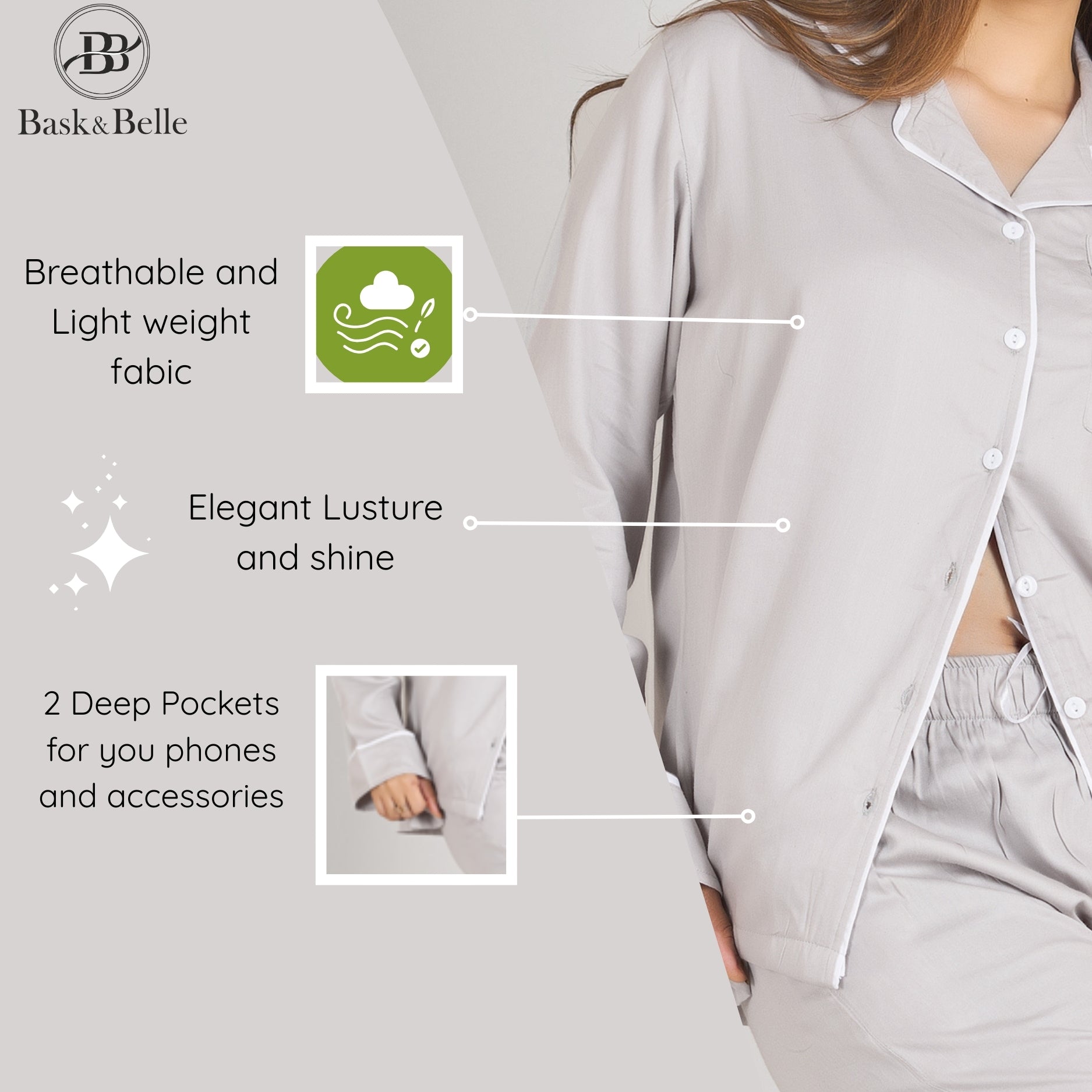 Premium Bamboo Sleepwear Set for Women | Soft, Lightweight Pajamas with Neem Finish | Gray